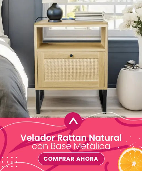 Velador Rattan Natural con Base Metálica