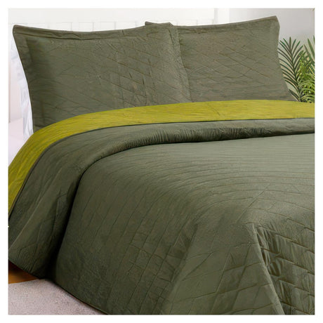 Quilt Bicolor Reversible Masel 2,5 Plazas Olive-Pistacho
