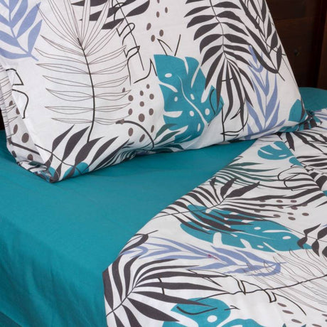 Juego de Sabanas Modelo Ramas Plaza KING Turquesa