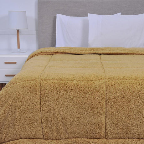 Quilt Bicolor Reversible Masel 2 Plazas Petróleo-Mostaza