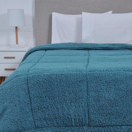Quilt Bicolor Reversible Masel 1,5 Plazas Blue-Petróleo