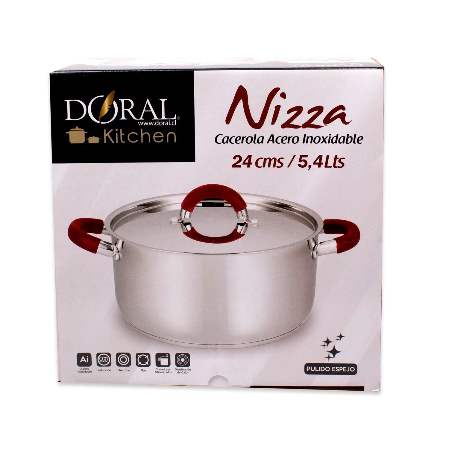 Cacerola acero inoxidable 6 Litros 24 X 12 cms - tapa acero - linea nizza