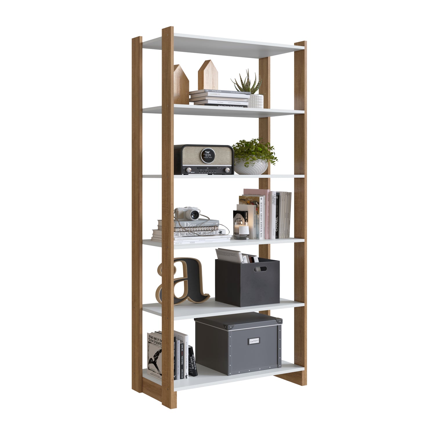 Estantería Nova 5 divisiones Blanco Castaño EY201.077